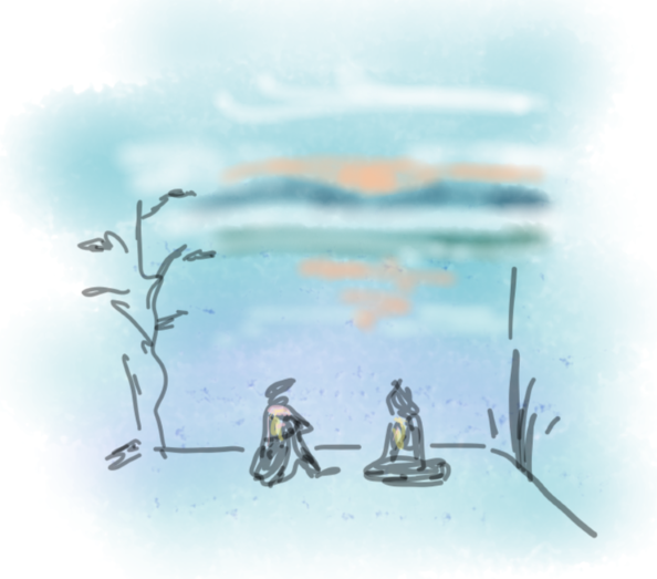 Lalu orang itu bercerita sedikit tentang temuannya, menanyakan pandanganmu, dan terakhir menanyakan posisimu dari hasil coret-coretanmu. Kamu mendengarkan, melihat lagi ke catatan skemamu, dan berpikir. Kamu memutuskan: sedang berada di mode pasif, sedang tenggelam di ruang aman (alam pikiran dan kesempatan) yang berharga ini.
